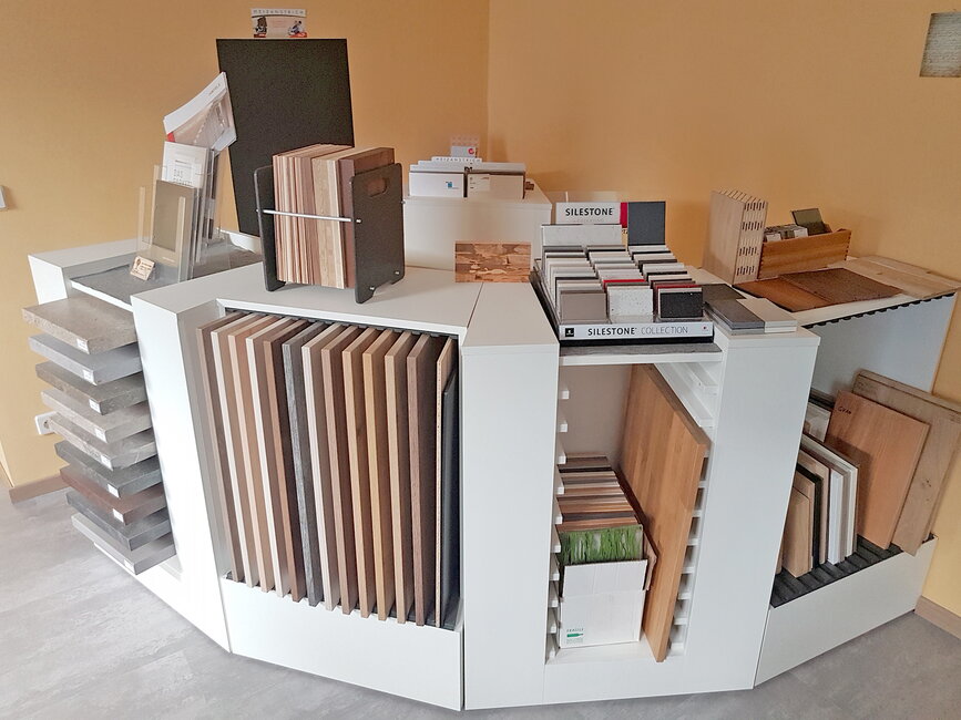 Sie können vor Ort auch Betten, Matratzen und Lattenroste in Ruhe probeliegen und testen. Außerdem präsentieren wir Ihnen hunderte Dekore, Holzarten, Natursteine, Parkettböden, Terrassendielen, Stoffe und Dekorglas, damit Sie Materialien direkt sehen, fühlen und vergleichen können.